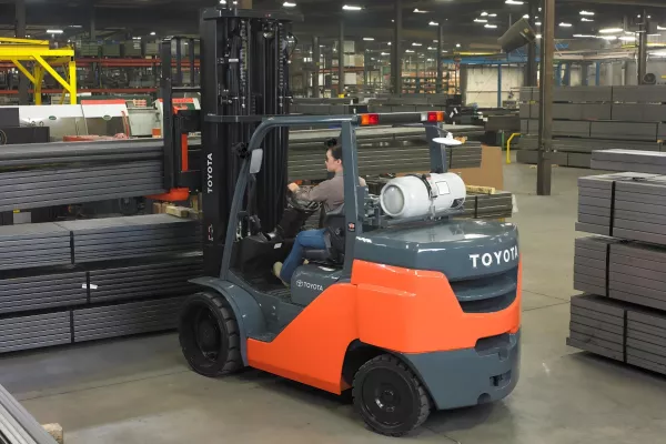 Powerful large IC cushion forklift for heavy indoor loads, durability, and fuel efficiency.